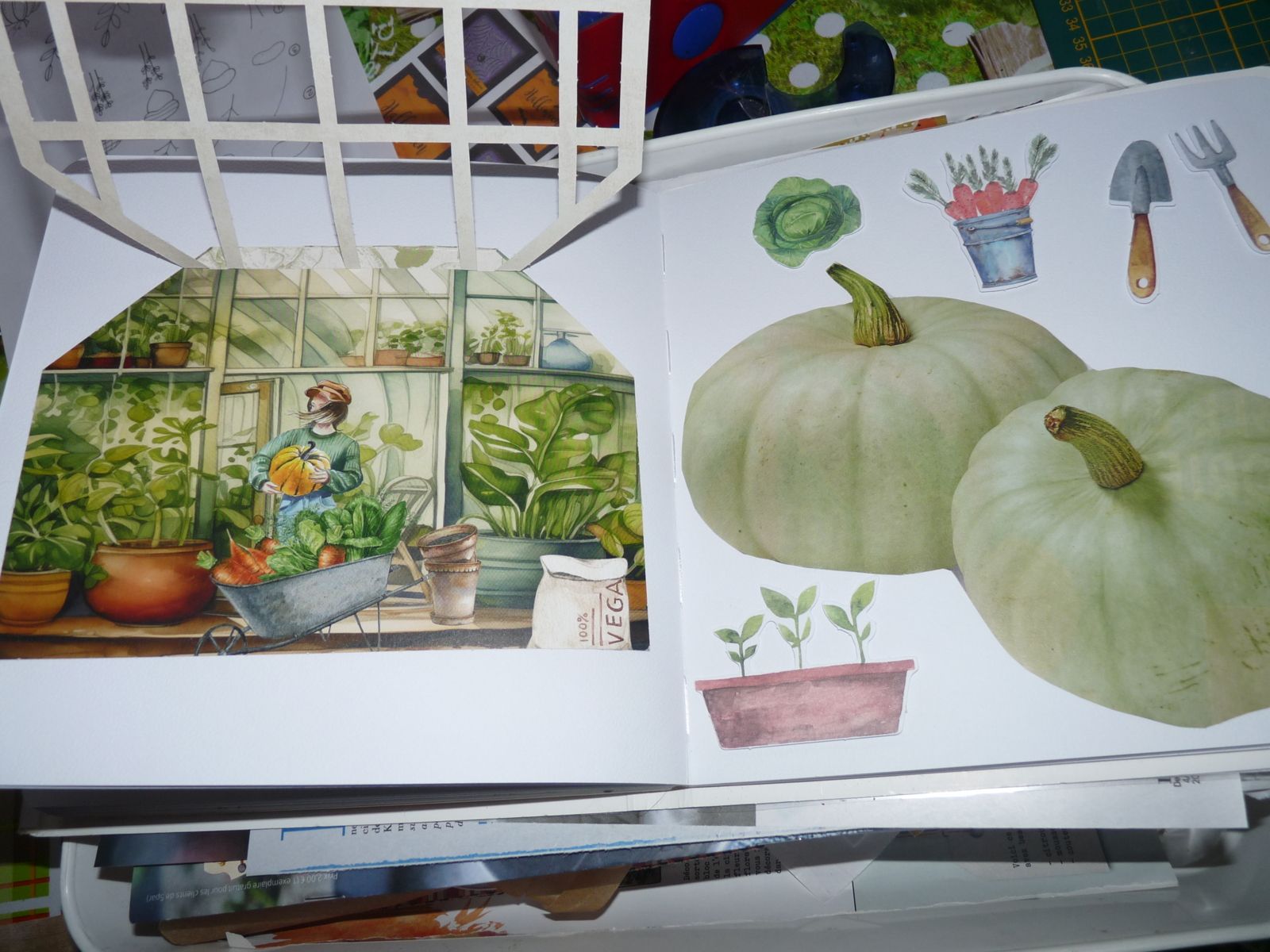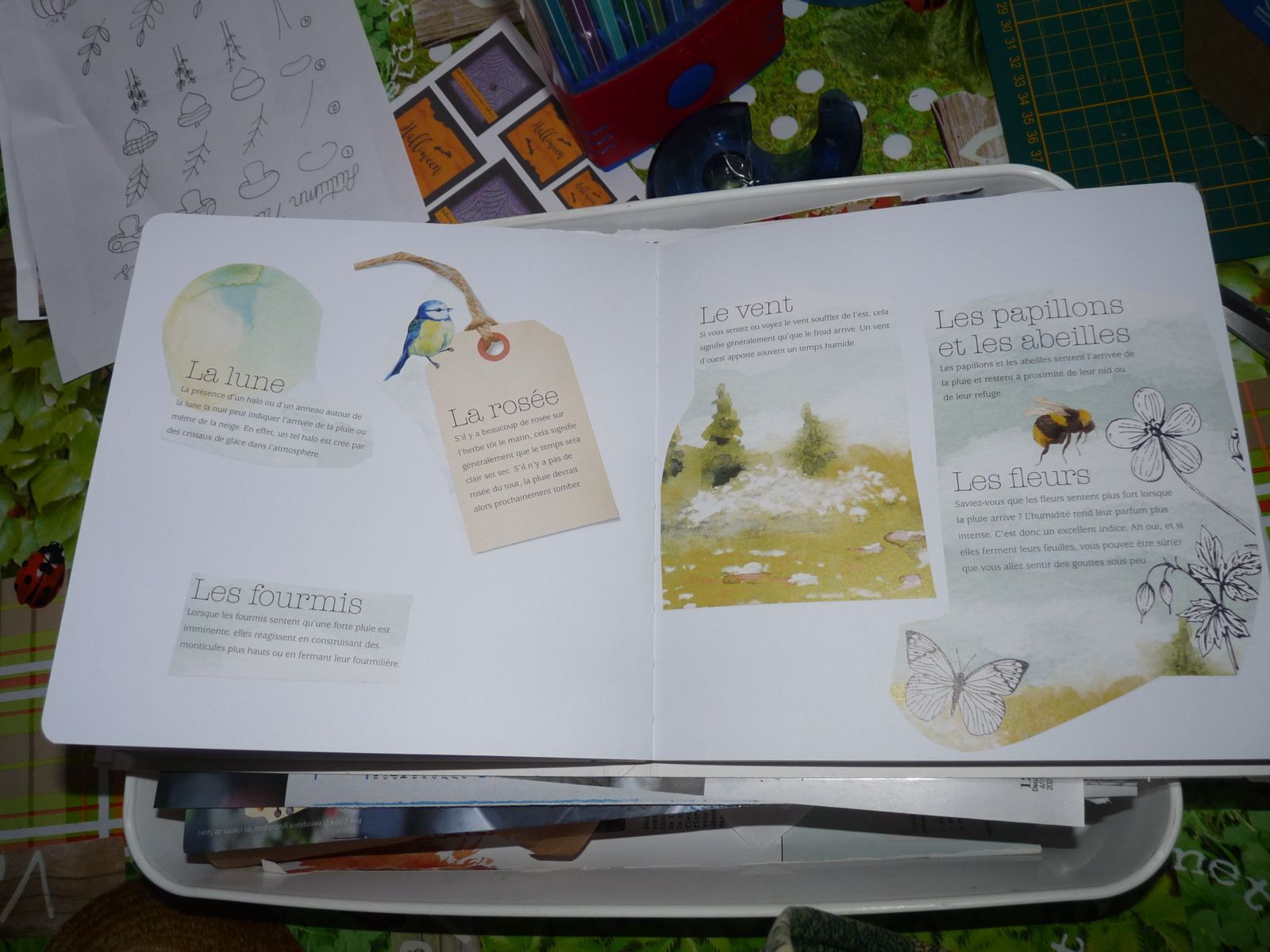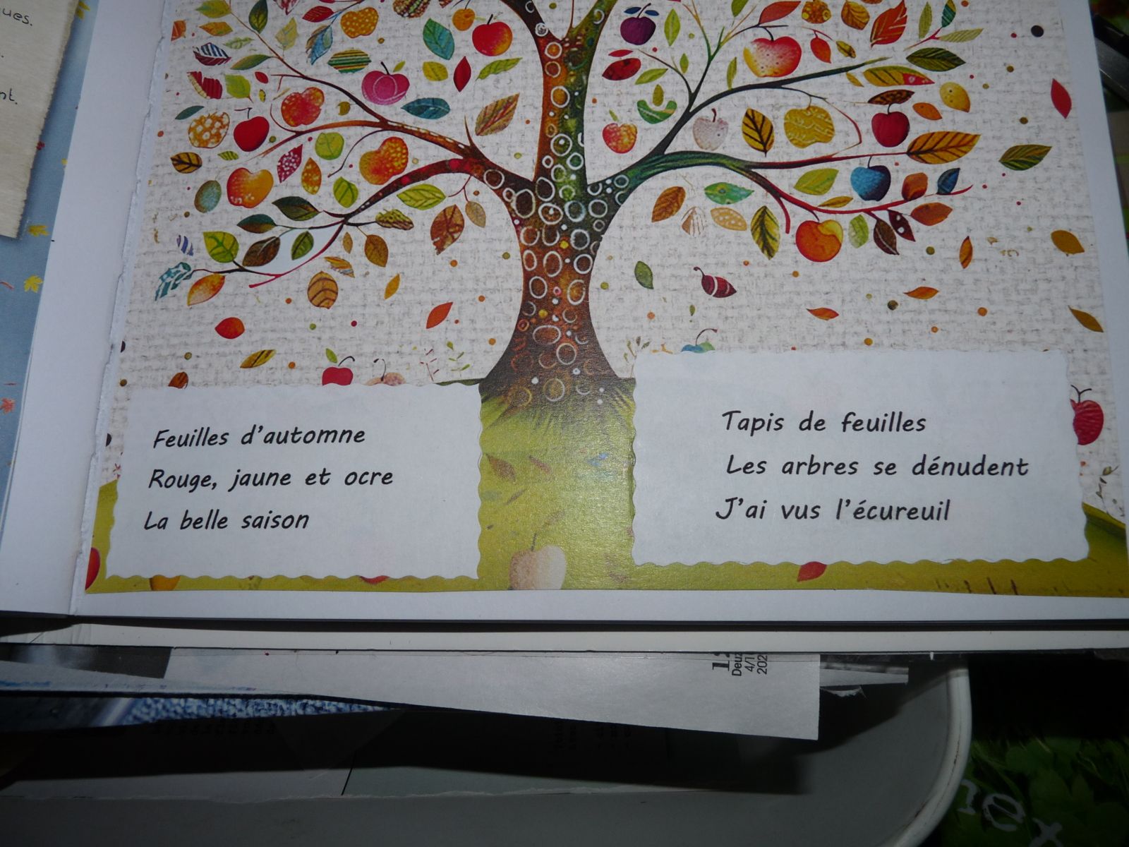 Je suis occupée à décorer les pages de mon album d'automne, les collages sont fait sur plusieurs pages, à présent il me faut décorer.