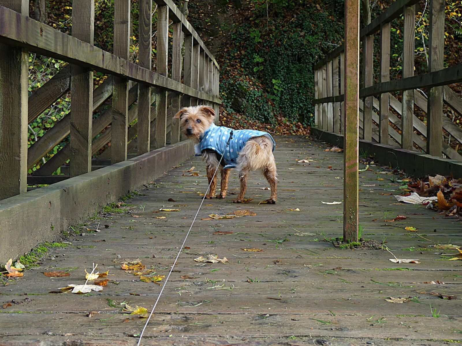 Ah oui Woopy ne rentre pas sans avoir monté sur le pont, moi pas cela glisse avec les feuilles, et toujours pas de rampe, le Syndicat d'initiative m'ont répondu qu'il ne pouvais rien faire.